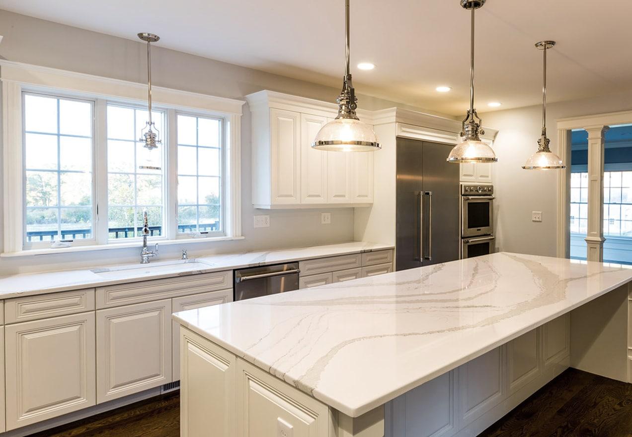 Known for their durability, stain and heat resistance, and non-porous surface, these slabs are perfect for busy kitchens.